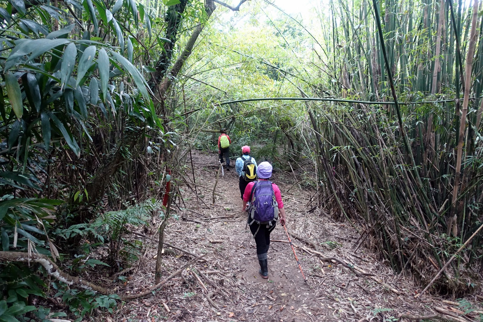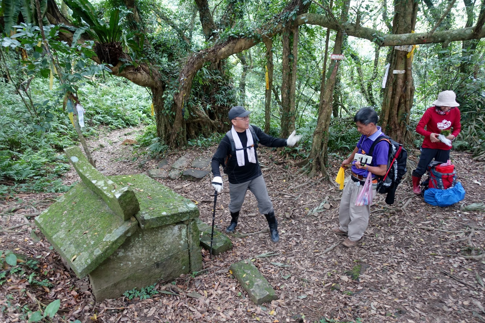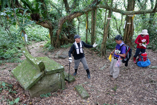 我們今天走『雪山尾稜』北段,所以在『雪山尾稜』與〈嶐嶐古道〉(嶐嶺古道)交會處的「石城仔嶺水頭土地公祠」,順著〈嶐嶐古道〉下石城。