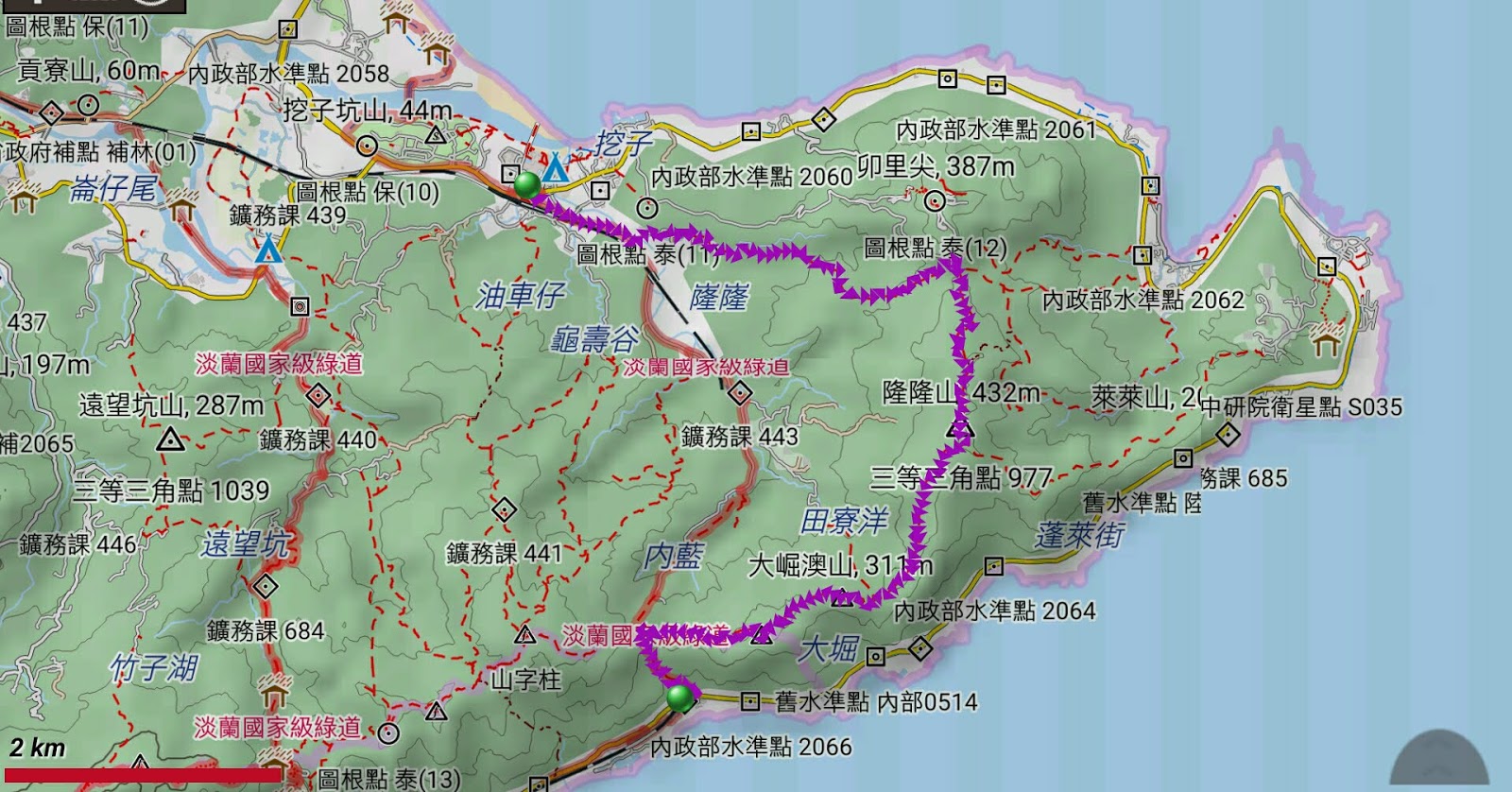 | 隆隆山~海拔高度432公尺,三等三角點977號 |